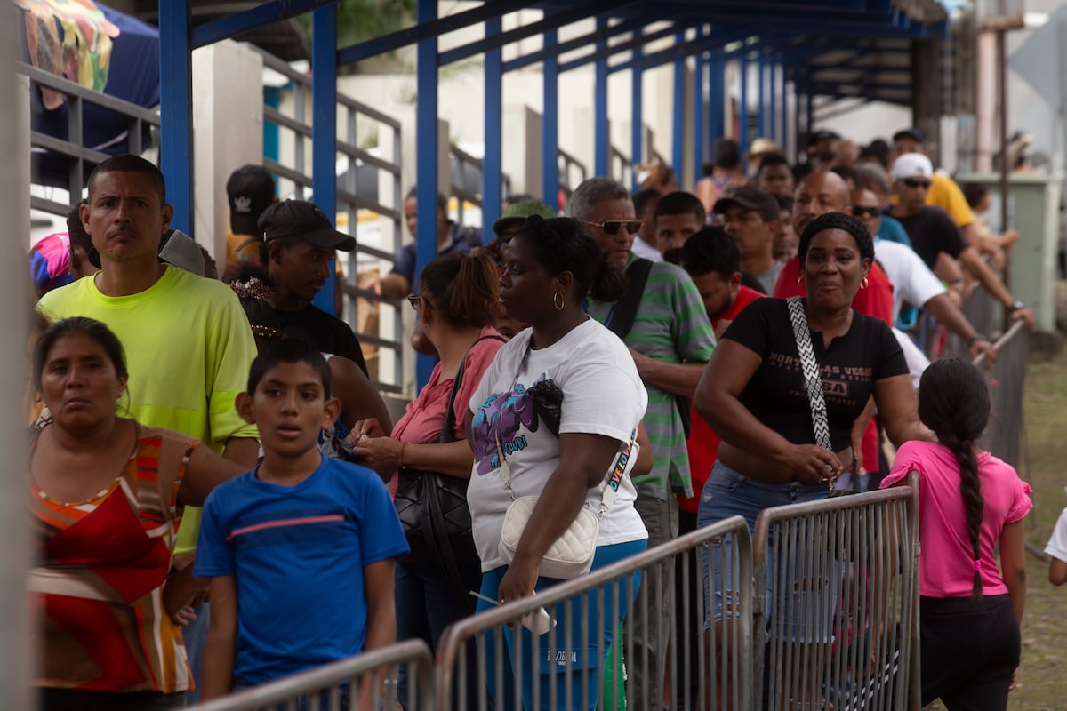 Cientos de moradores de Mateo Iturralde, en San Miguelito, soportaron largas filas bajo un clima húmedo este viernes 15 de noviembre para obtener una bolsa de 20 libras de arroz en la feria del Instituto de Mercadeo Agropecuario (IMA).