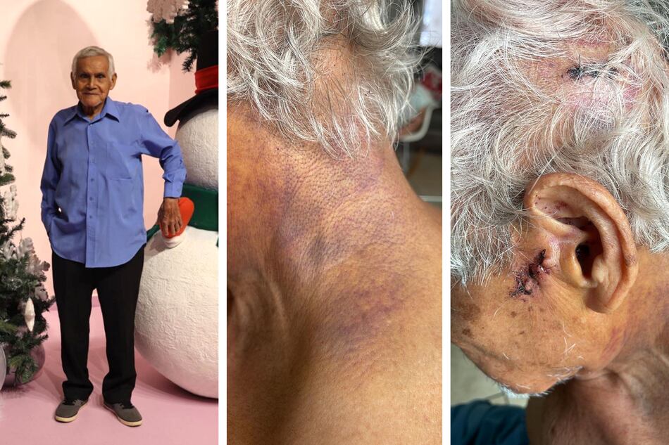 “A mi suegro le tomaron 25 puntos en la cabeza y tiene hematomas en la espalda y el cuello”, cuenta Rodríguez. La familia se encuentra en shock al enterarse de los antecedentes de Quintero.