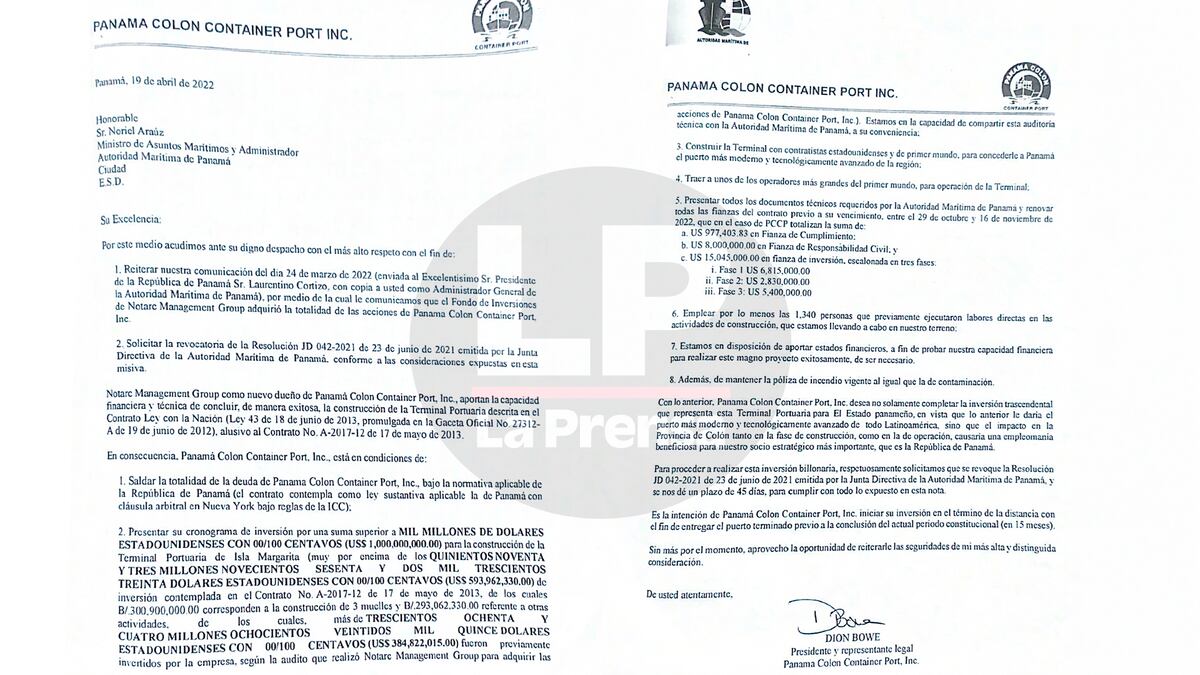 En esa nota a Arauz, Bowe aludió a una “comunicación del día 24 de marzo de 2022”, en la que se había informado a la AMP y al presidente Cortizo sobre el nuevo rol de NMG en el proyecto de Isla Margarita. Además, prometió que uno “de los operadores más grandes del mundo” se encargaría de gestionar el puerto.