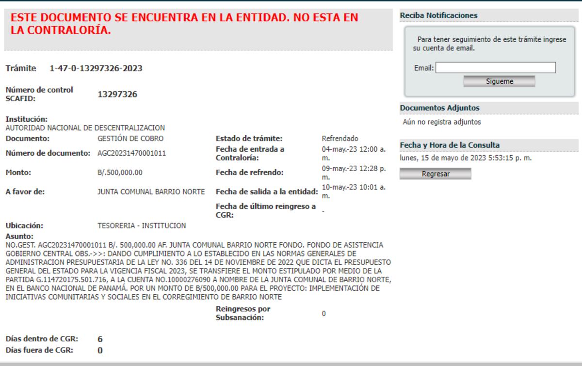 La Prensa accedió a más de 3 mil registros de la Contraloría General de la República –con su número de control (Scafid), monto y destino, entre otros datos– que muestran que la Autoridad Nacional de Descentralización (AND) repartió en tres años –de 2021 a 2023– al menos $202 millones a 473 juntas comunales fuera del procedimiento legal.