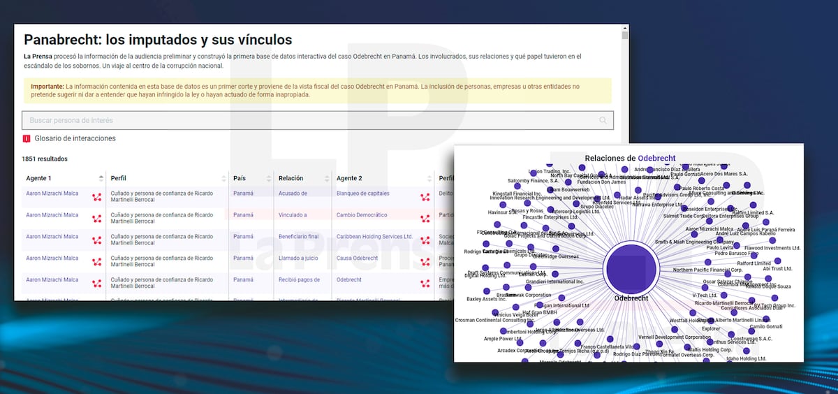 Para desentrañarla, un equipo de La Prensa tradujo la maraña judicial y la convirtió en una base de datos interactiva donde los usuarios pueden ver quiénes estuvieron involucrados y navegar en sus interacciones: qué hicieron, dónde, con qué métodos y con la ayuda de quiénes.
