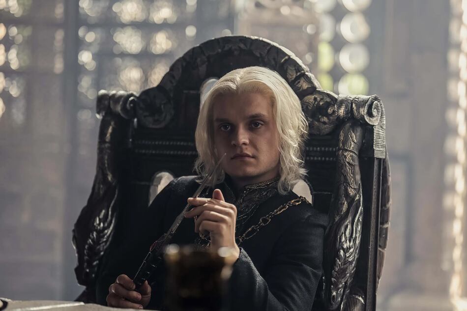 La escena de Aemond recostado sobre la prostituta en posición fetal (evocando a un niño en el regazo de su madre), confesando por primera vez en pantalla a alguien cómo se sentía realmente por la muerte de su sobrino Lucerys. O diciendo que se “enorgullece” que su tío Daemon Targaryen lo considerase su enemigo y haya enviado a asesinarlo, sigue siendo consecuencia de la ausencia de esa figura guía. Aemond es más instruido que su hermano Aegon, es mejor espadachín, su dragón Vhagar es el más grande que existe, y aun así, Aegon fue elegido como rey y él siente que nunca se le ha tomado en serio.