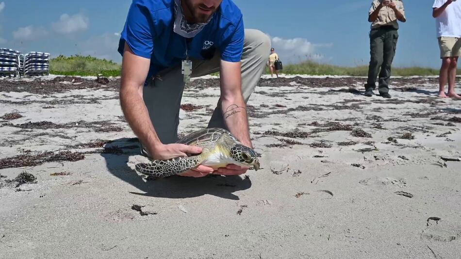 Las tortugas, libres de tumores y nadando con fuerza, fueron puestas en el agua del océano, lo que marca un hito importante en su recuperación, indica el comunicado de la Oficina de Prensa de los Cayos de Florida.